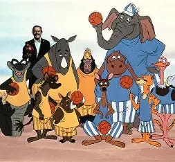 The famous football match works because the animation isn’t trying to be subtle. The animals move with broad gestures and expressive timing that feels closer to classic shorts than feature-length restraint. They don’t blend into the live action here; they clash with it, and the film seems to delight in that friction.